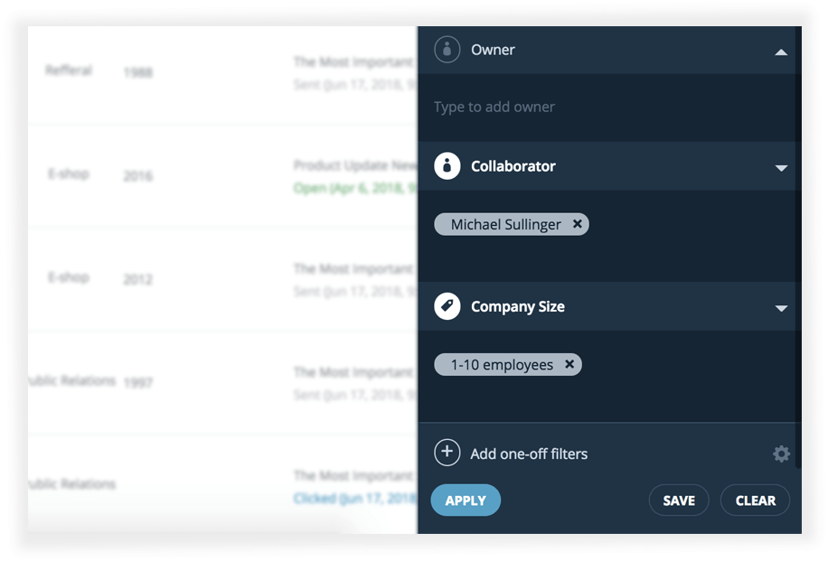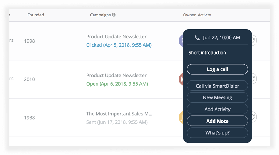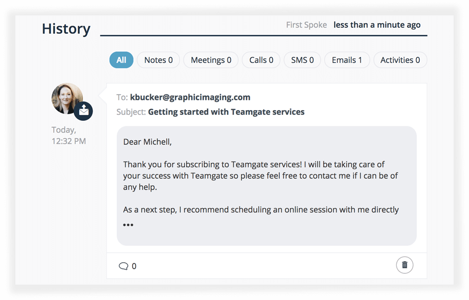 Manage scheduled activities straight from your lead list using Teamgate’s sales lead tracking software. Schedule a meeting or add a reminder all in one click. You can also easily add pre-created events, and eliminate manually entering recurring meetings and actions. With the Teamgate sales lead management software, it couldn’t be simpler.
