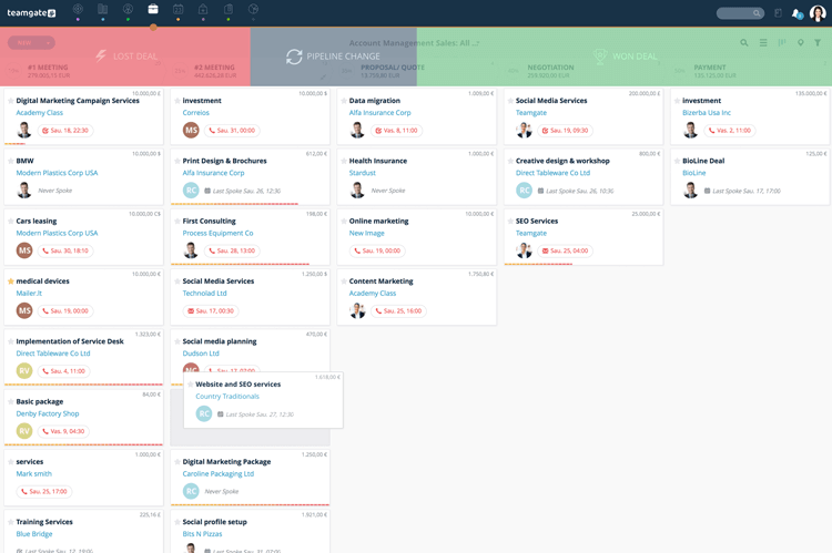 - Teamgate supports multi-currency to help you deal with companies located in different countries.